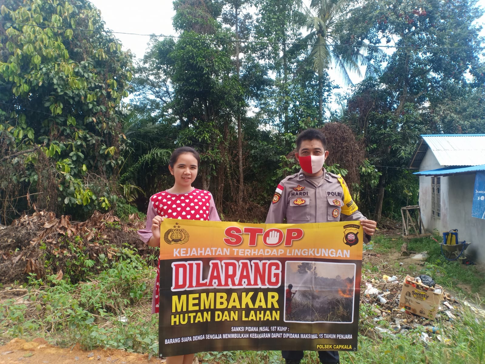 Kapolres Bengkayang AKBP Dr. Bayu Suseno, S.H., S.I.K., M.M., M.H. melalui Kapolsek Capkala IPDA Hasan Abdullah, S.H., M.H. mengatakan Bhabinkamtibmas Desa Aris yaitu Aipda Hardiansyah menyampaikan himbauan Stop Karhutla dengan media peraga banner dengan tujuan agar warga masyarakat tidak membuka lahan dengan cara membakar hutan dan lahan.