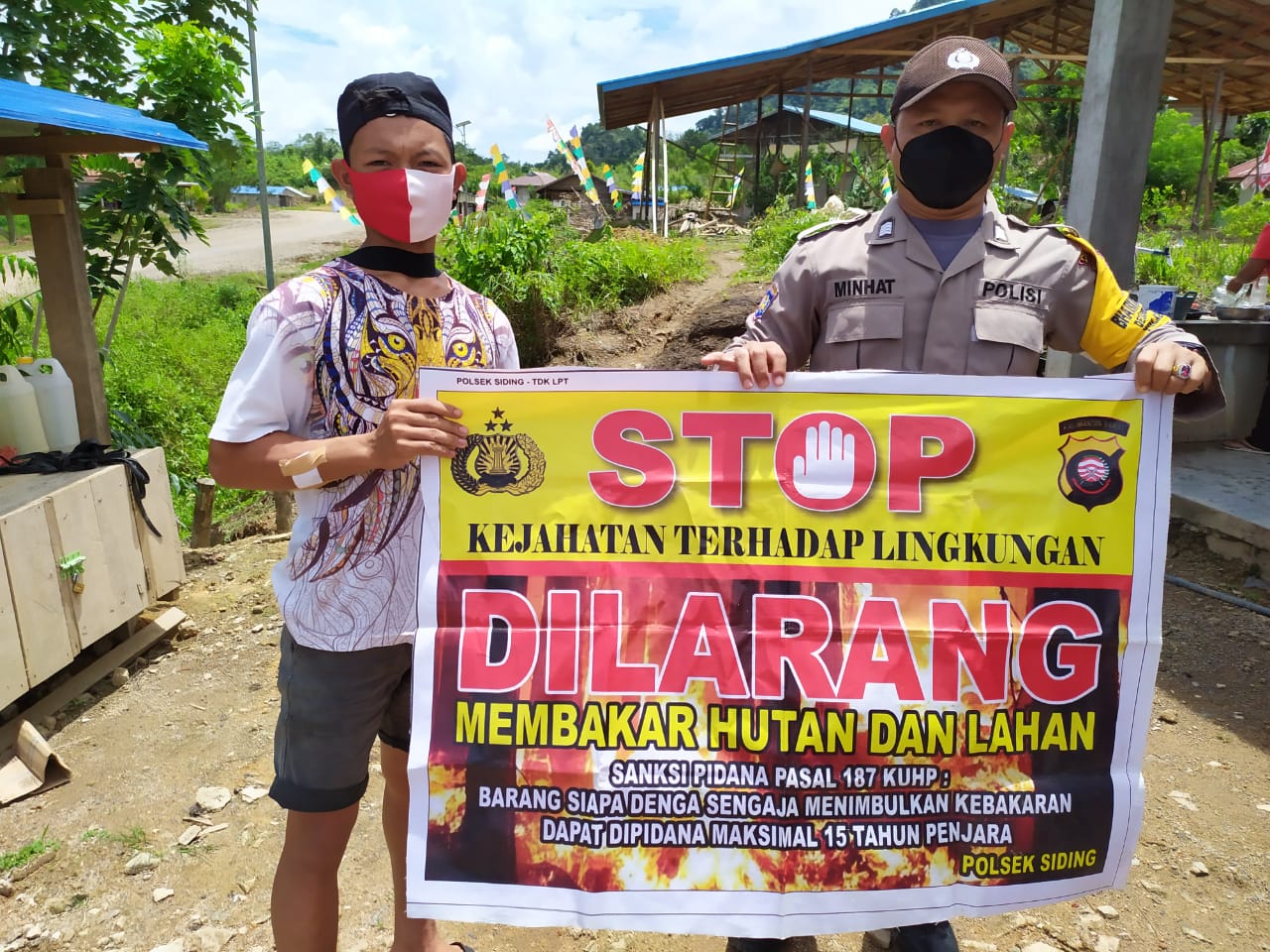Untuk mencegah kebakaran hutan dan lahan (Karhutla), Bhabinkamtibmas Polsek Siding Bripka Minhat terus melakukan sosialisasi kepada warga binananya.