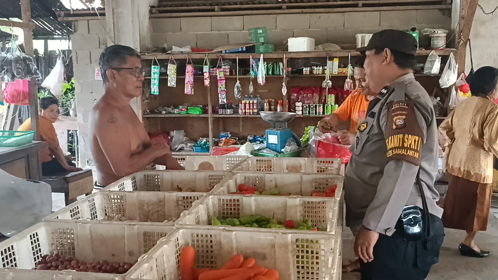 Usai lakukan pengamanan ibadah minggu di gereja, Ka SPKT Regu I melanjutkan kegiatannya lakukan patroli ke Pasar Samalantan. Tim patroli menyambangi dan menanyakan situasi keamanan beberapa pedagang di pasar sayur. Selanjutnya tim patroli kembai ke Mapolsek Samalantan dan melaporkan hasil kegiatannya ke pimpinan. “Kegiatan patroli berlangsung lancar dan tidak ada ditemui kendala atau gangguan Kamtibmas”, ungkap Aipda Erikson Simanjuntak.