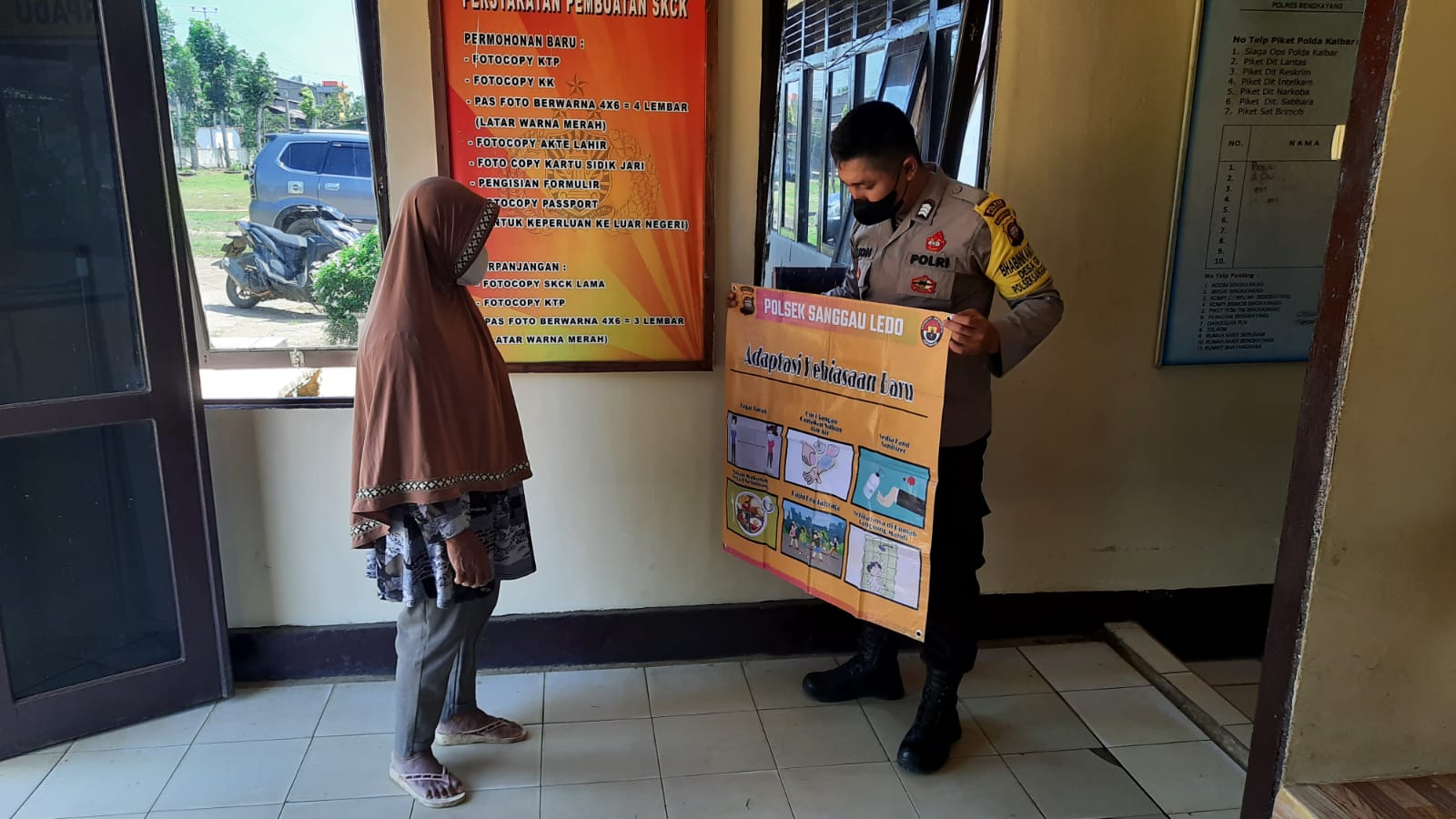 Brigadir Dionisius menyampaikan himbauan ataupun edukasi mengenai pencegahan penularan Covid-19, dengan mengajak warga pada saat berkunjung ke Polsek Sanggau Ledo