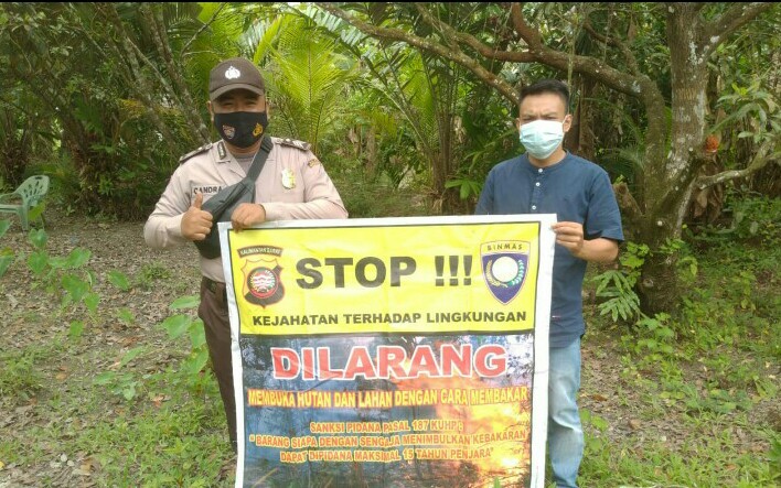 Dalam kegiatan tersebut Brigadir Candra menghimbau kepada masyarakat dengan memgunakan benner agar stop membakar lahan dan hutan dengan cara membekar akan dikenakan pidanan hukuman.