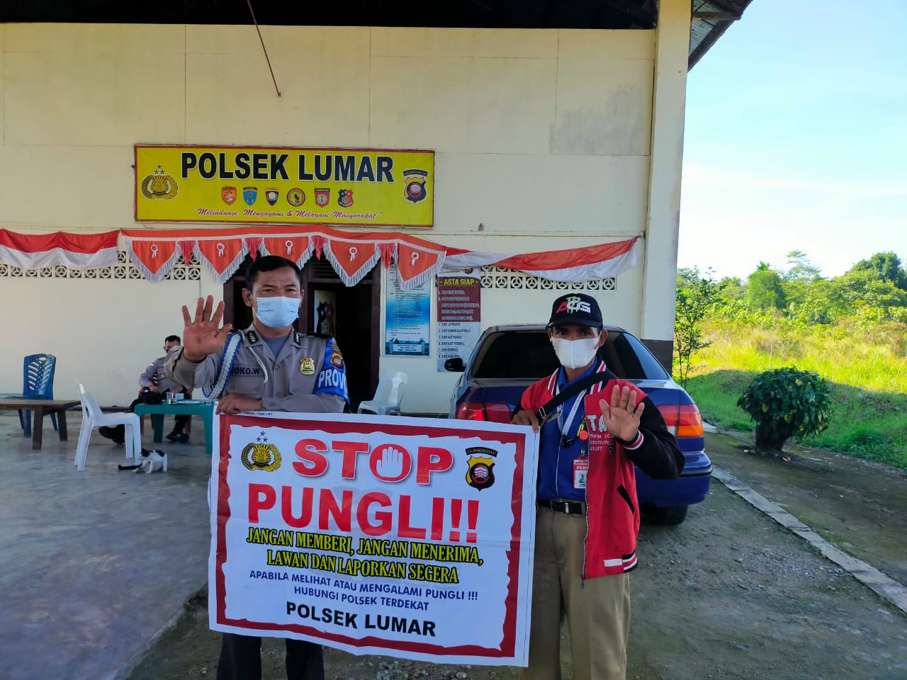 Kegiatan sosialisasi dan himbauan larangan Pungli yang digencarkan Kapolsek Lumar dan Personilnya rutin dilakukan setiap hari, bahkan dihari pekan sabtu dan minggu. sasaran himbauan dilakukan dipemukiman warga, pertokoan, perkantoran dan pusat-pusat layanan publik, Kamis (27/05/2021).