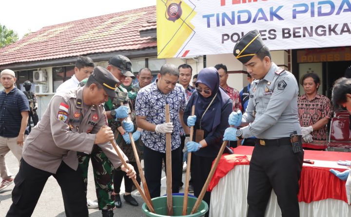 Bengkayang, Kalbar – Kepolisian Resor Bengkayang Polda Kalbar menggelar Konferensi Pers Pengungkapan Kasus Narkoba dan sekaligus pemusnahan barang bukti Narkoba jenis Sabu seberat 2.101,38 gram Bruto, bertempat di Halaman Mapolres Bengkayang, Jum’at (13/10/23) pagi. Kegiatan tersebut dipimpin oleh Kasat Resnarkoba Iptu Maju K Siregar dan dihadiri Danki C 645/GTY Bengkayang, Kasubbag Pembinaan Kejari Bengkayang, Perwakilan..