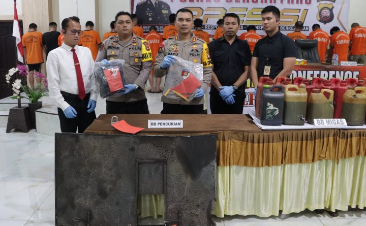 Bengkayang, Kalbar – Kepolisian Resor Bengkayang Polda Kalbar berhasil mengungkap kasus pencurian sarang burung walet yang melibatkan 8 tersangka dengan tempat kejadian yang berbeda. Hal tersebut disampaikan langsung oleh Kapolres Bengkayang AKBP Dr. Bayu Suseno, S.H., S.I.K. ,M.M., M.H. saat konferensi pers yang digelar di Aula Tunggal Panaluan, Selasa (4/7/23) siang. “Untuk kasus pencurian sarang..