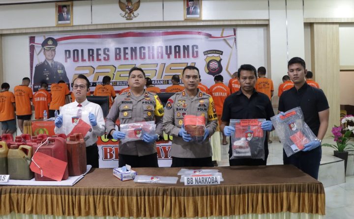 Bengkayang, Kalbar – Kepolisian Resor Bengkayang Polda Kalbar berhasil menggagalkan aksi peredaran narkoba jenis sabu seberat 3,95 Kilogram di Jalan Pereges, Kecamatan Seluas, Kabupaten Bengkayang. Kapolres Bengkayang AKBP Dr. Bayu Suseno, S.H., S.I.K., M.M., M.H. saat Konferensi Pers yang digelar pada Selasa (4/7/23) siang di Aula Tunggal Panaluan membenarkan kejadian tersebut. Ia mengatakan bahwa penangkapan..