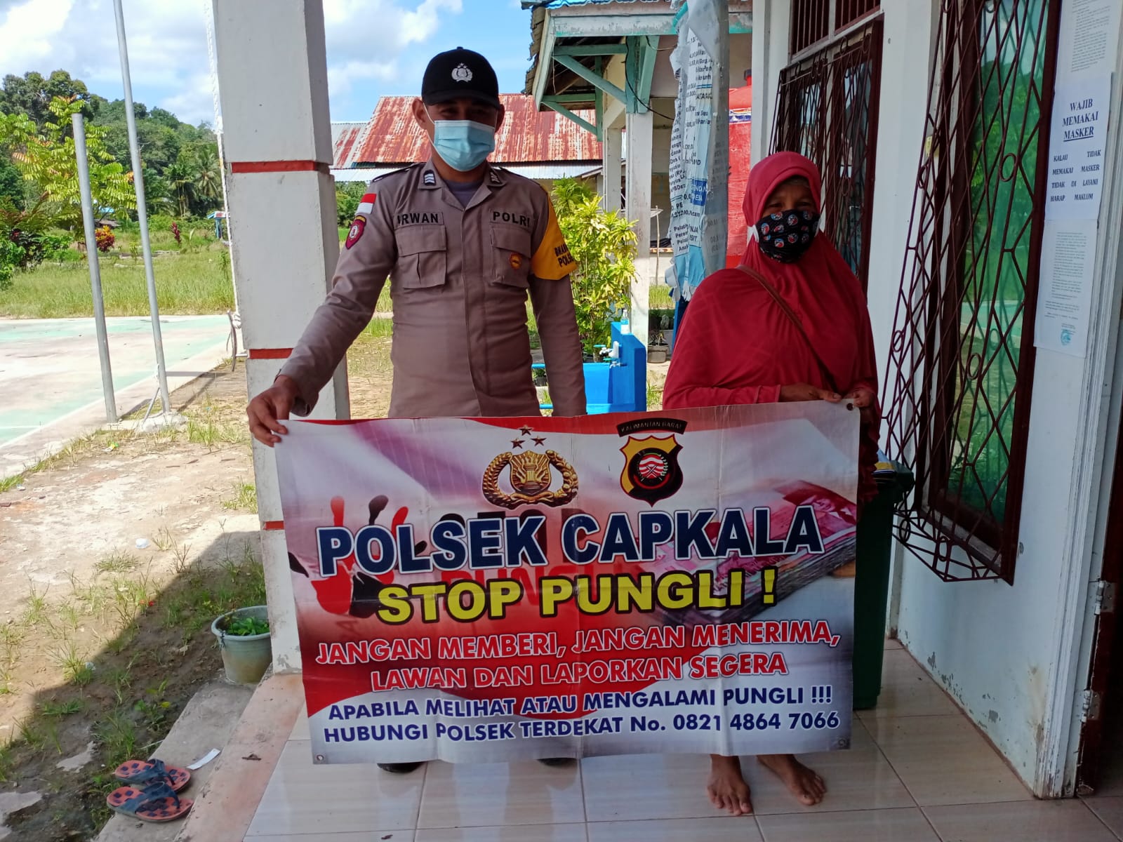“Kegiatan sosialisasi Saber Pungli ini mengacu pada Peraturan Presiden Republik Indonesia nomor 87 tahun 2016,dan ini terus dilaksanakan oleh personil Polsek Capkala untuk mengingatkan kepada seluruh elemen masyatakat agar tidak terlibat Pungli maupun pelanggaran hukum lainya”ucap KapolsekKapolsek.