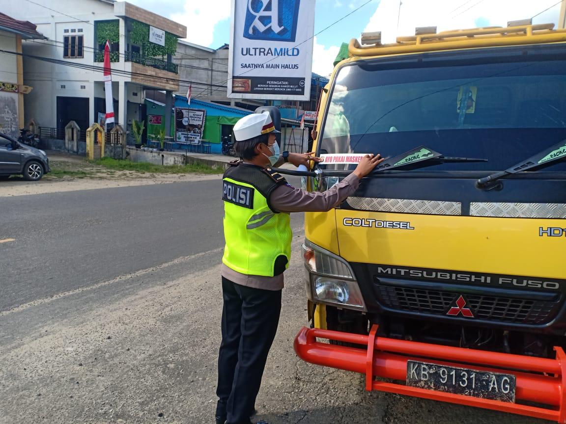 Selain memberikan masker secara gratis, pihaknya juga melaksanakan penempelan stiker kepada para pengemudi Truk yang melintas di Depan Pos Lantas Bengkayang.