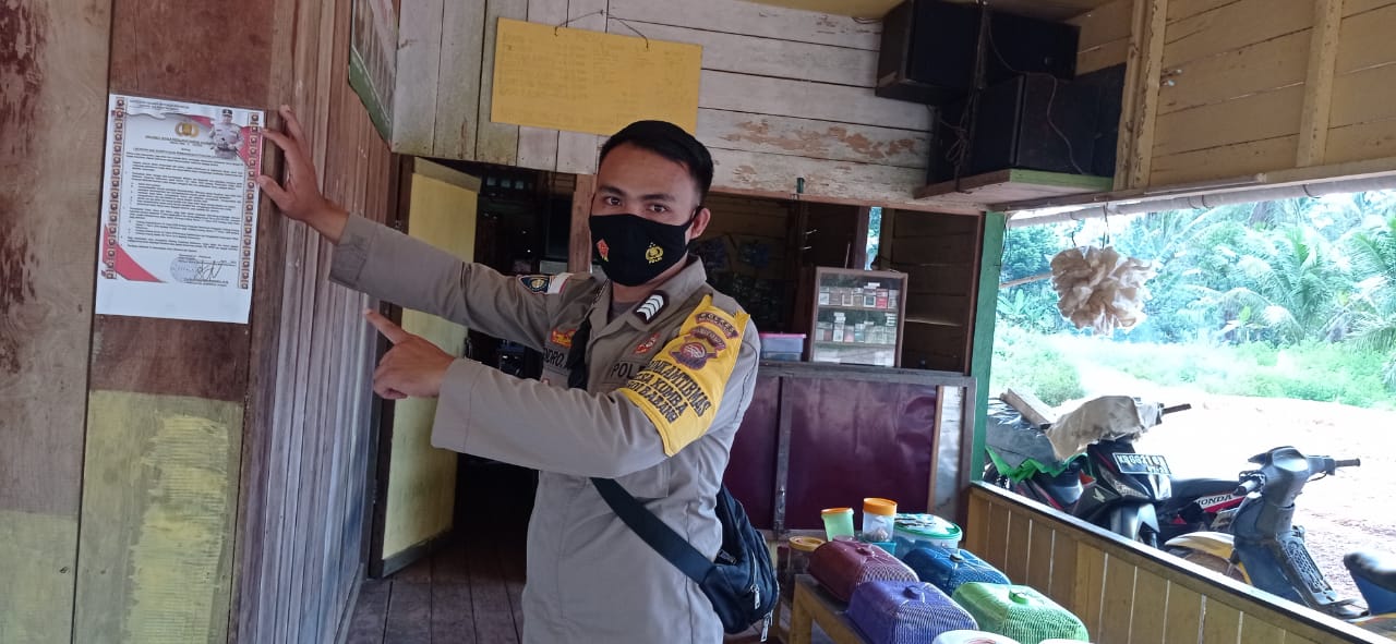 Seperti yang di lakukan bhabinkamtibmas desa kumba Brigadir Hendro menyambangi desa binaannya mendatangi tempat umum dan menempelkan pamplet karhutal di toko milik warga desa kumba kecamatan jagoi babang, Selasa (2/8/2022).