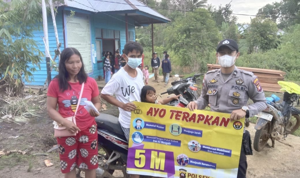 Kegiatan ini dilaksanakan sesuai dengan tugas dan tanggung jawabnya sebagai aparat Penegak Hukum, Pengayom, Pelindung Masyarakat serta memberikan himbauan kepada masyarakat tentang protokol kesehatan guna memutus mata rantai Covid-19″ucap Bripda Harris”.