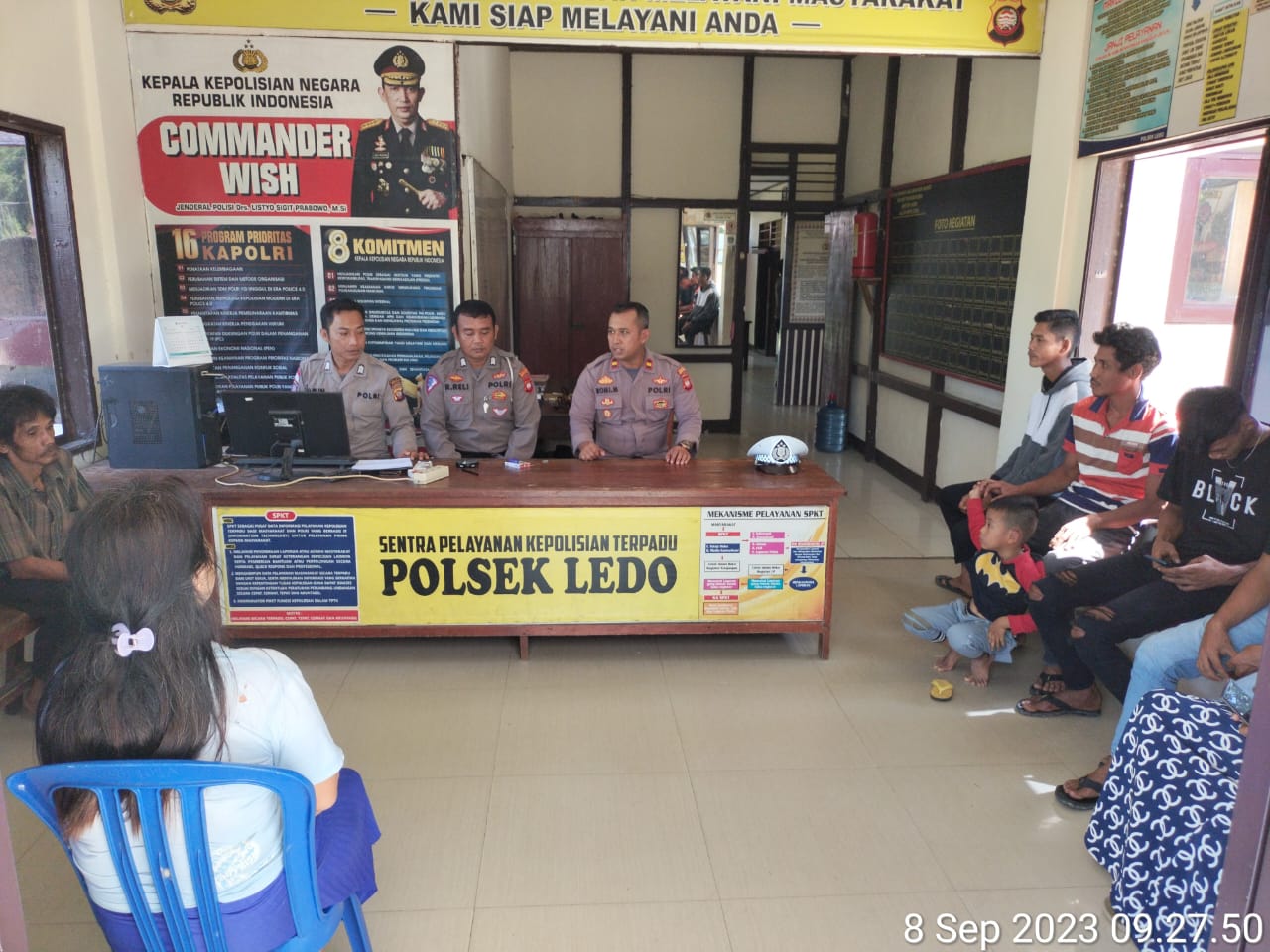Kapolsek Ledo Ipda Romi Maryadi, S.Sos Menemui Warga Yang Datang Ke Polsek Ledo Dan Mendengarkan Curhatan Dari Warga Sebagai Bentuk Program Jumat Curhat Di Polsek Ledo; (Jumat, 08/09/2023).