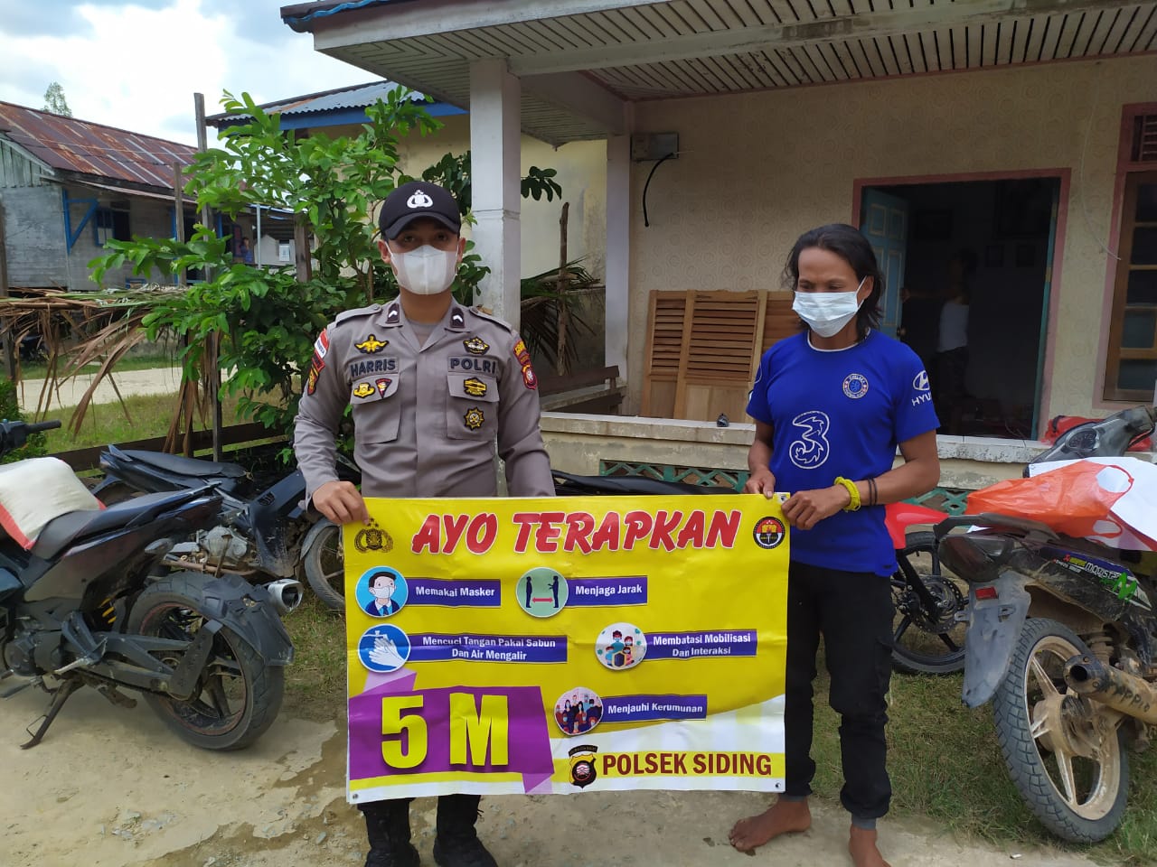 Kapolsek Siding Ipda Bambang Rudiyanto, telah memerintahkan seluruh Personil Polsek Siding berperan aktif serta tidak bosan memberikan imbauan serta mendisiplinkan warga dalam menanggulangi penyebaran virus covid-19 yaitu mengedepankan protokol Kesehatan dengan cara masyarakat agar selalu disiplin Protokol Kesehatan seperti menerapkan 5M menggunakan Masker, menjaga jarak, mencuci tangan, Menghindari Kerumunan dan Membatasi Mobilitas.