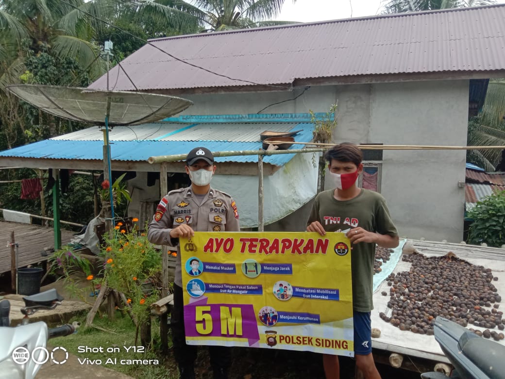 Kapolsek Siding Ipda Bambang Rudiyanto, telah memerintahkan seluruh Personil Polsek Siding berperan aktif serta tidak bosan memberikan imbauan serta mendisiplinkan warga dalam menanggulangi penyebaran virus covid-19 yaitu mengedepankan protokol Kesehatan dengan cara masyarakat agar selalu disiplin Protokol Kesehatan seperti menerapkan 5M menggunakan Masker, menjaga jarak, mencuci tangan, Menghindari Kerumunan dan Membatasi Mobilitas.