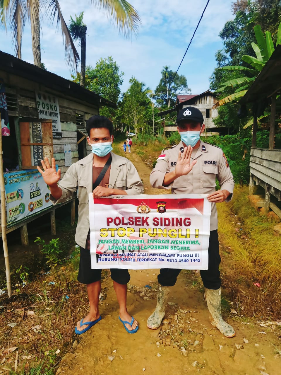 Personil Polsek Siding Bripka Boni Setiawan mengatakan, sosialisasi Saber Pungli terus dilaksanakan dengan tujuan untuk memberikan pemahaman kepada seluruh stake holder agar menghindari serta mencegah praktek pungutan liar yang tidak sesuai dengan ketentuan dan aturan pada pelayanan publik dan perkantoran.