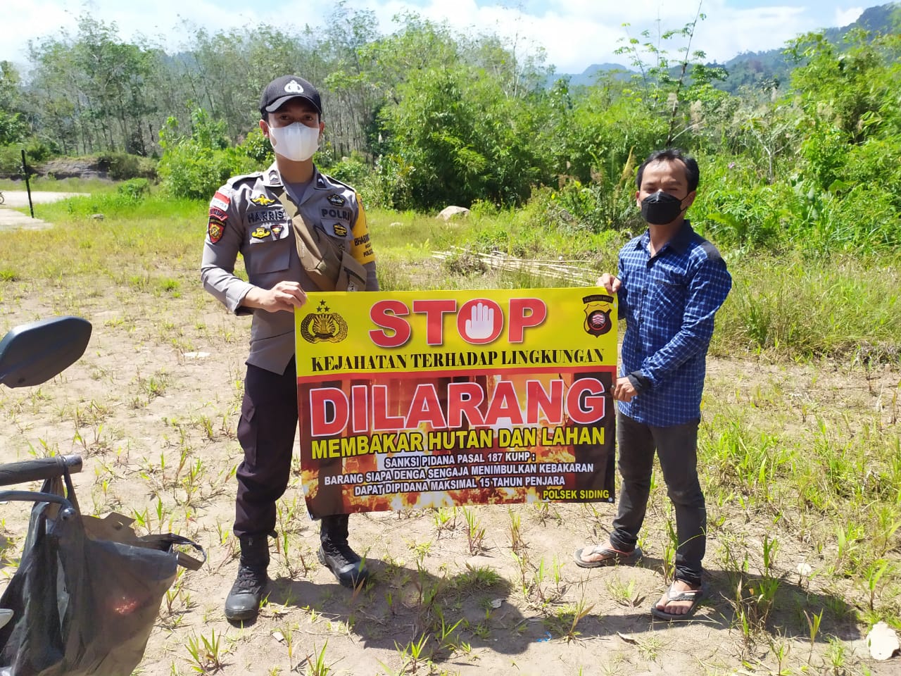 Bhabinkamtibmas Desa Siding Bripda Dainel Harris yang melaksanakan kegiatan patroli menyampaikan “Hari ini kami laksanakan patroli di wilayah Desa Siding Kecamatan Siding dalam rangka mencegah terjadinya kebakaran hutan dan lahan, kami temui warga masyarakat yang sedang beraktifitas di kebun dan menyampaikan himbauan larangan membakar hutan kebun dan lahan karena sekarang sudah memasuki musim kemarau banyak lahan kering yang mudah terbakar”, katanya.