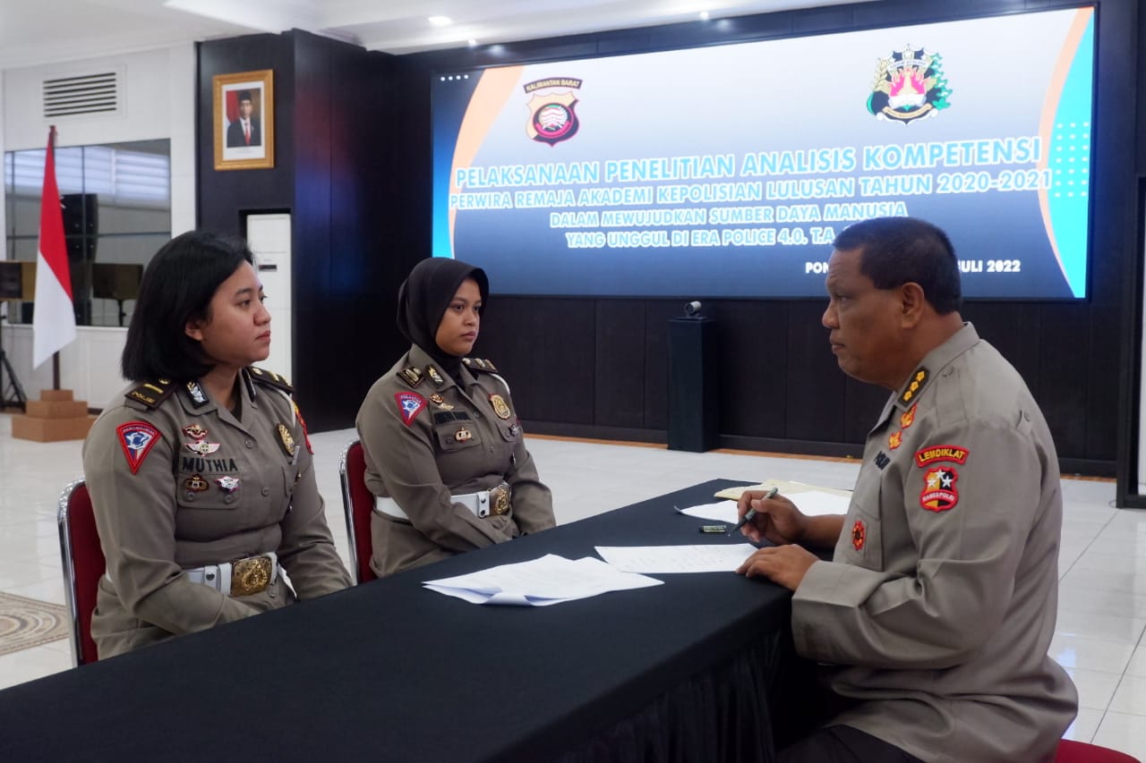 PONTIANAK, KALBAR – Biro SDM Polda Kalimantan Barat menyelenggarakan kegiatan penelitian Kompetensi lulusan Akpol tahun 2020 sampai 2021, di Graha Khatulistiwa Polda Kalbar, Senin (25/7).