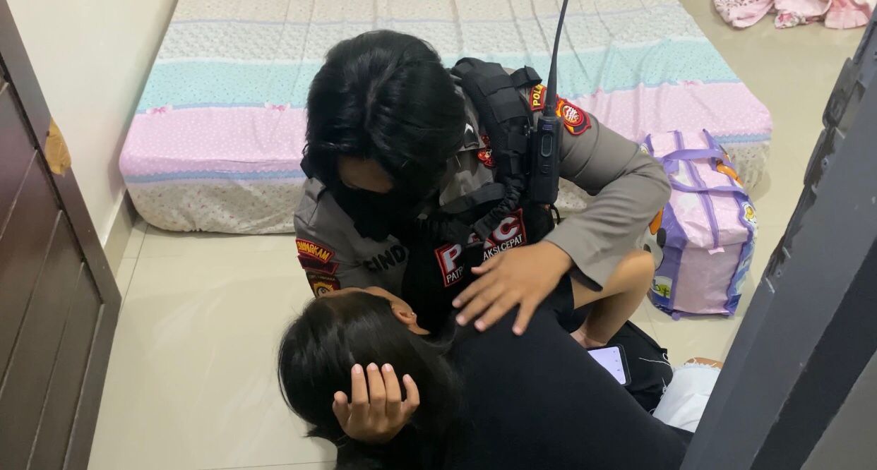 Tim PRC Samapta Polda Kalbar Bripda Cindy Fadila, Brigpol Fandhi Nur dan Bripka Teguh Imam Santoso yang tiba di lokasi lalu membujuk agar ART tersebut mengurungkan niatnya.