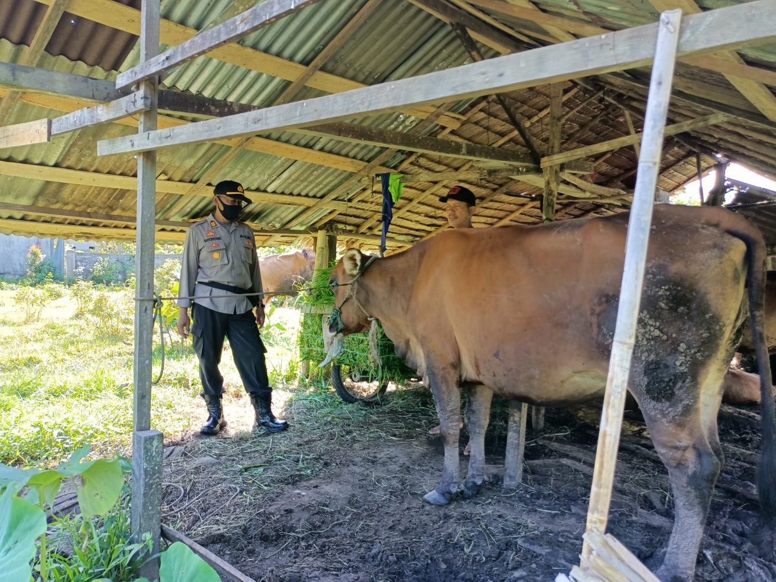 AKP Sutrisno Memberikan Himbauan kepada pemilik ternak sapi (sdr. Akang)  dan (Sdr. Budiawan) dan penyemprotan Kandang Sapi Dusun Payak Itam  Desa. Sutera Kec. Sukadana, jika menemukan gejala Penyakit Mulut dan Kuku pada ternak agar segara melaporkan kepada Pihak Kepolisian atau Dinas Pertanian dan Pangan Kabupaten Kayong Utara.