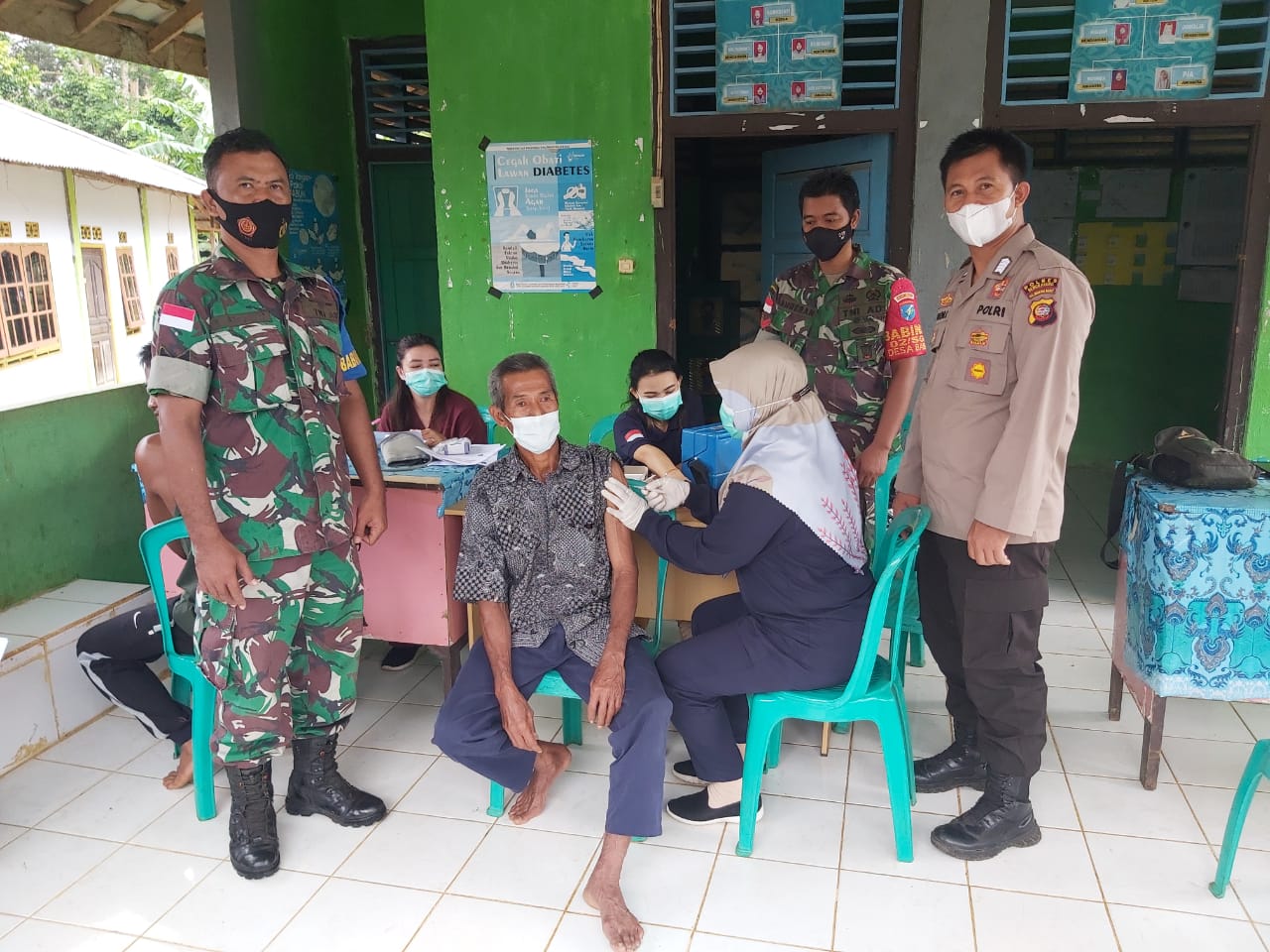 Pengamanan Dalam Pelaksanaan Suntik Vaksinasi terhadap masyarakat umum dan lansia dilakukan oleh Babinsa, Babinpotdirga dan Personel Polsek Sanggau Ledo polres Bengkayang Polda Kalbar