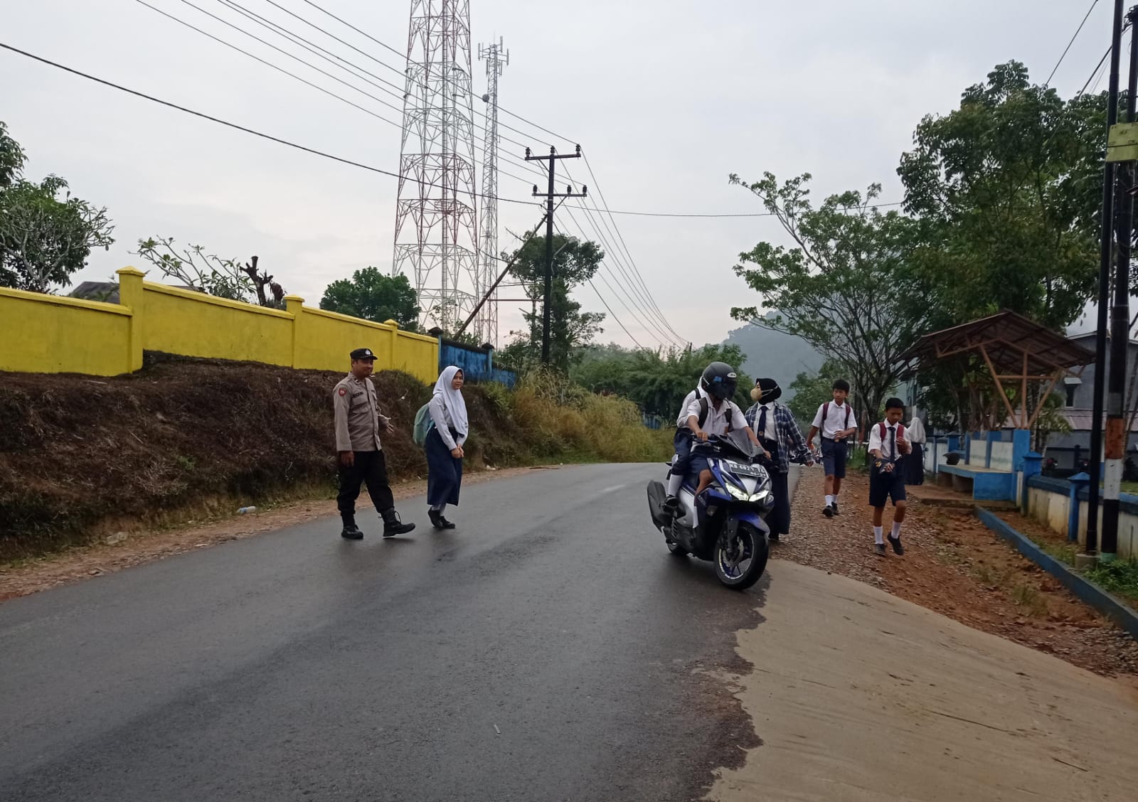 Kapolsek Samalantan menerjunkan personilnya lakukan pengaturan lalulintas atau strong point saat para pelajar hendak masuk sekolah. Kanit Samapta Aipda Suciono dan Bhabinkamtibmas Briptu Yehezkiel T turun ke Jalan raya Samalantan depan SMPN 1 Samalantan Senin (4/3/2024) mulai pukul 06.35 pagi.
