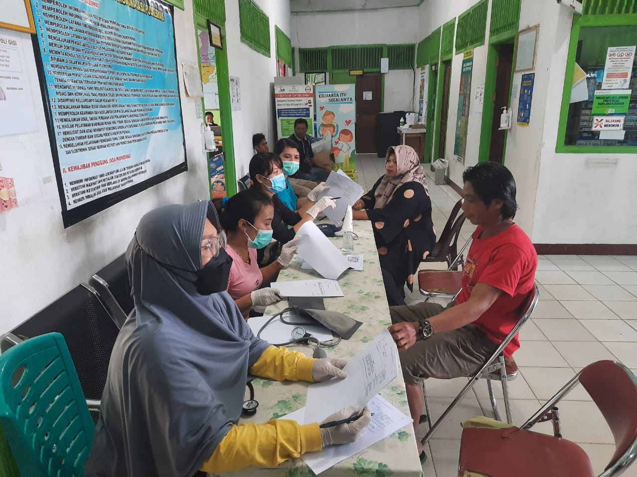 c) Petugas memberikan penyuluhan tentang 5M ( PHBS ) dan vaksinasi Covid-19.
