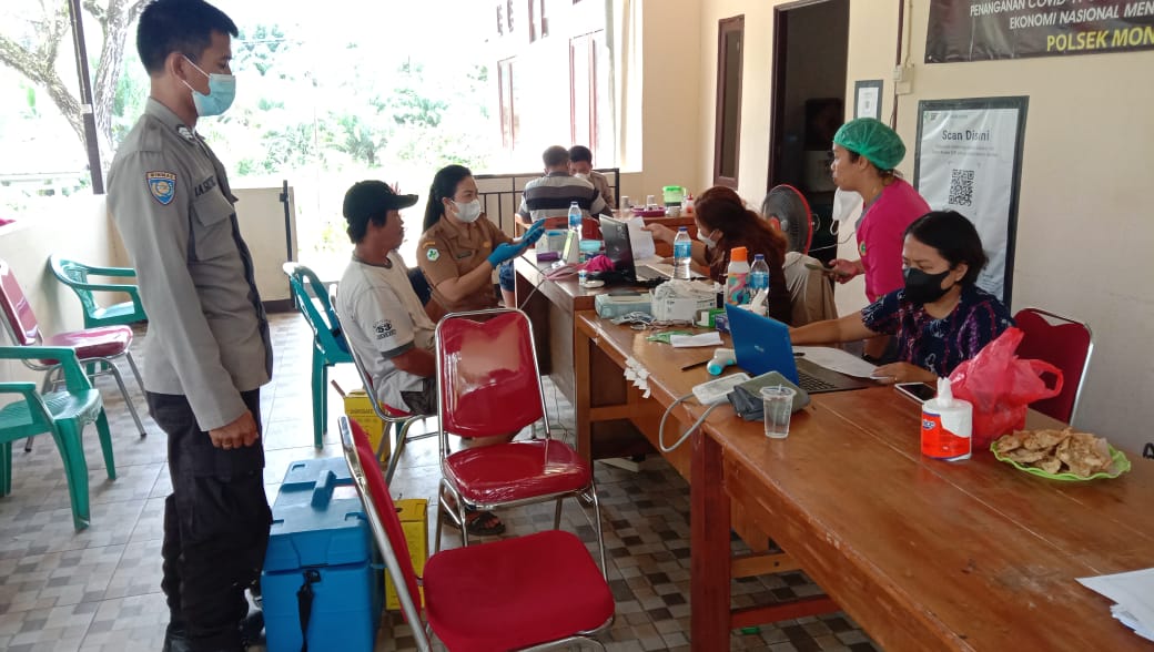 Pelaksanaan Vaksinasi covid-19 Sinovac , Pfizer dan AZ Alokasi Dinkes di polsek monterado dan puskesmas monterado dalam rangka percepatan program pemerintah melaksanakan vaksinasi agar supaya terbentuk Herd immunity / kekebalan kelompok berlangsung dengan aman dan lancar , dengan tetap menerapkan protokol kesehatan dalam pencegahan terjadinya penyebaran covid-19 .