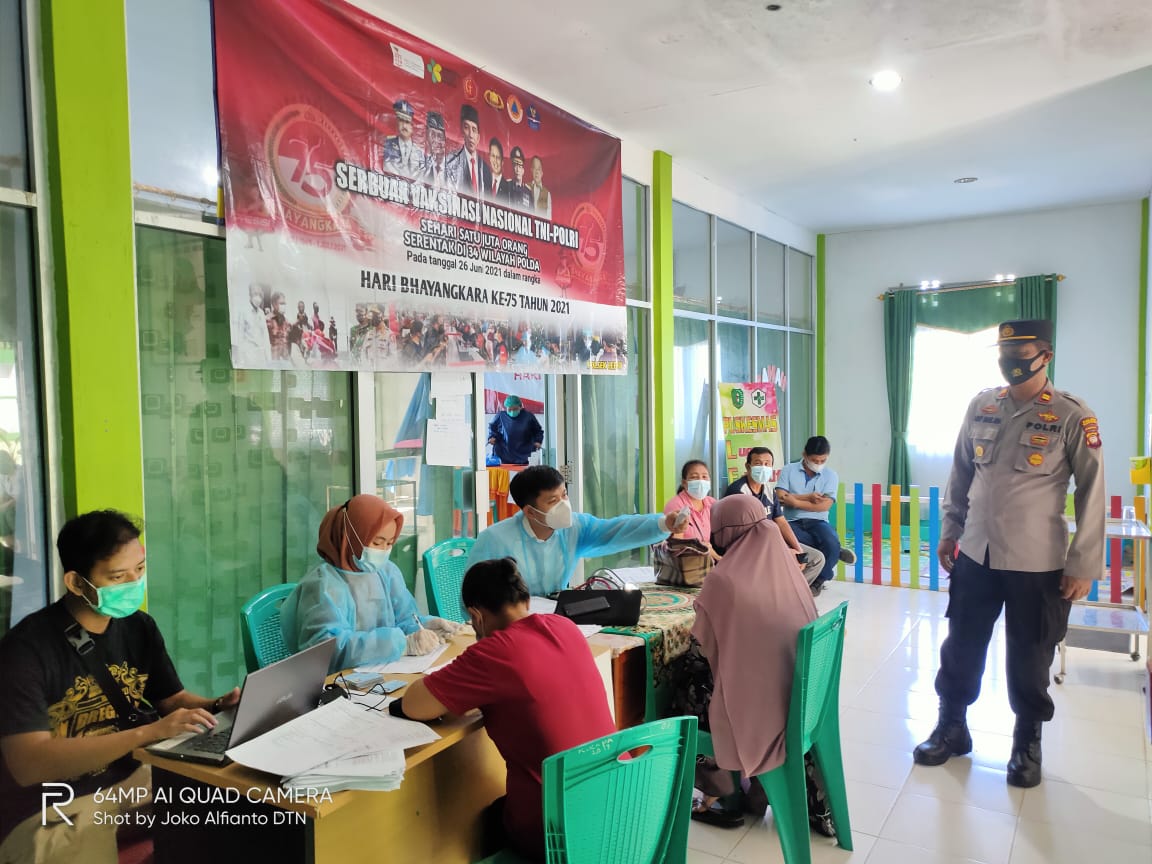 Kegiatan vaksinasi massal dalam Rangka HUT Bhayangkara ke-75 tahun 2021, berlangsung di Puskesmas Kecamatan Ledo, Sabtu (26/6/2021).