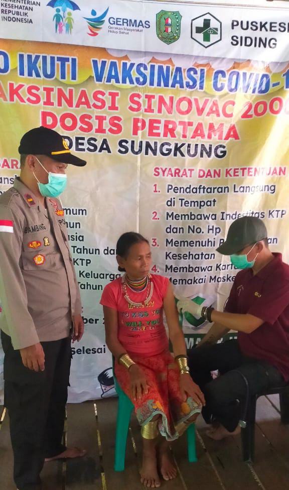 “kegiatan ini disambut antusias warga Desa Sungkung Dan bisa hadir menyaksikan vaksinasi bagi suku Dayak Di Sungkung dalam rangka program Pemerintah ini, dan saya berharap kegiatan vaksinasi ini dapat meningkatkan daya imun masyarakat atau herd immunity Kecamatan Siding khususnya warga Desa Sungkung”, ungkap Ipda Bambang Rudiyanto selaku Kapolsek Siding Polres Bengkayang.