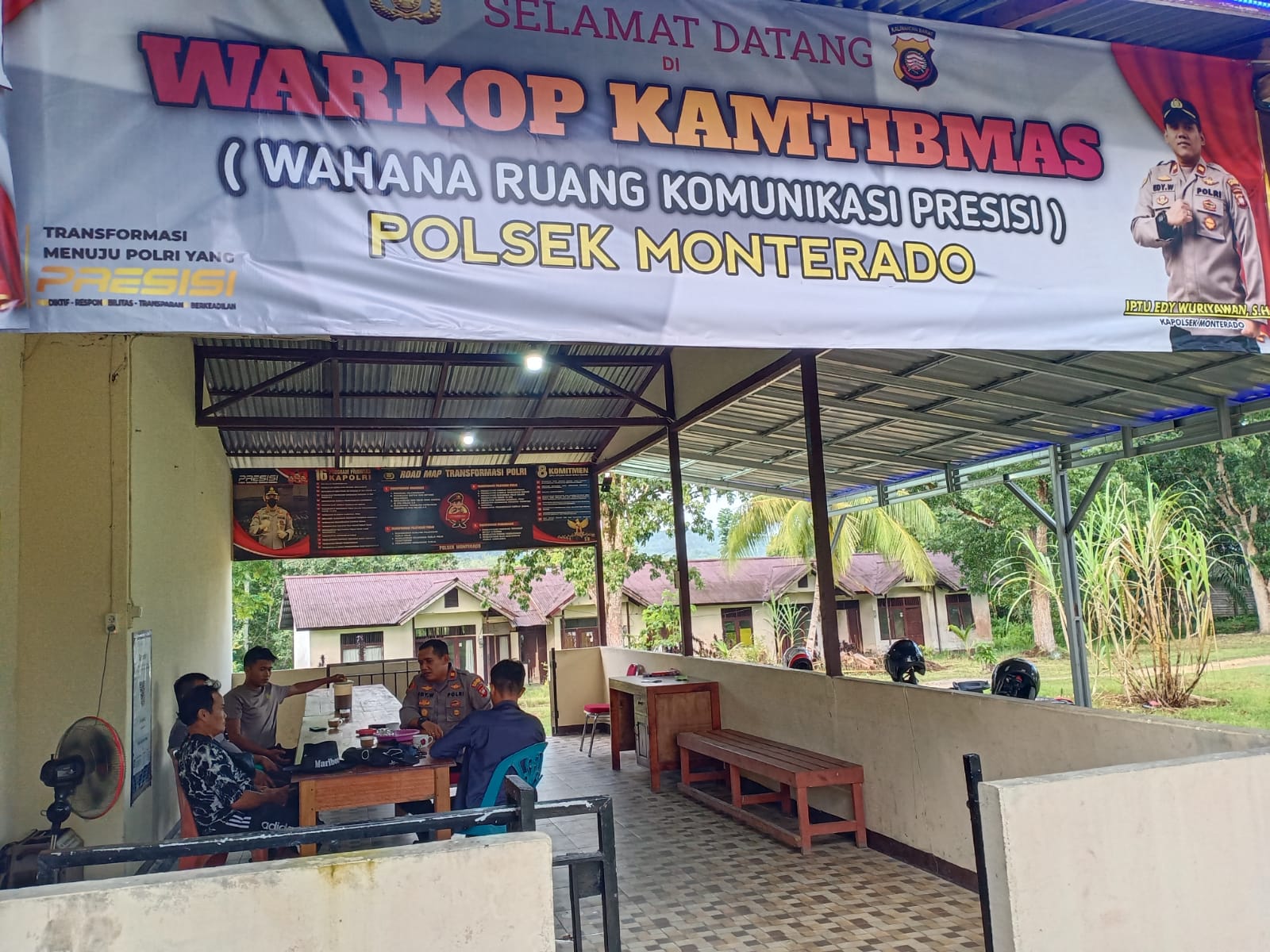 Kapolsek IPTU Edy Wuriyawan, S.H., M.H. mengatakan, “Warkop Kamtibmas ini merupakan sarana Polsek Monterado untuk mengelola dan mempererat jalinan tali silahturahmi, sekaligus mengupayakan keikutsertaan masyarakat untuk bersama-sama menjaga stabilitas kamtibmas”, ucapnya.