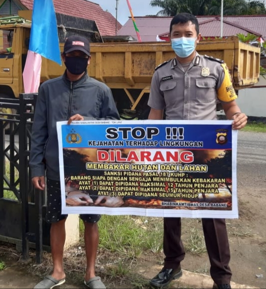 Dalam sosialisasinya, Bhabinkamtibmas mengajak masyarakat untuk bersama mencegah terjadinya Karhutla serta mengimbau untuk tidak membuka lahan pertanian dengan cara dibakar.